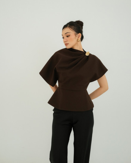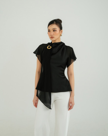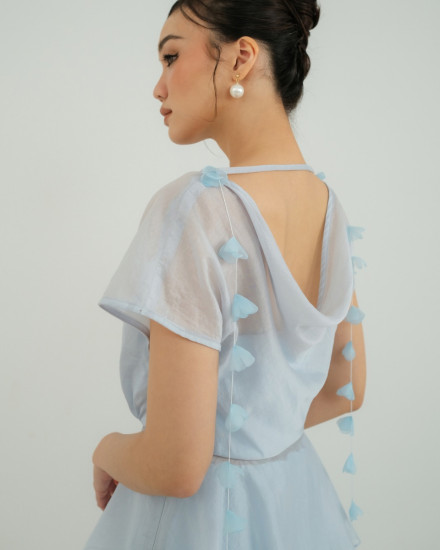 Soft ivory top with puff sleeves and delicate floral appliqué
